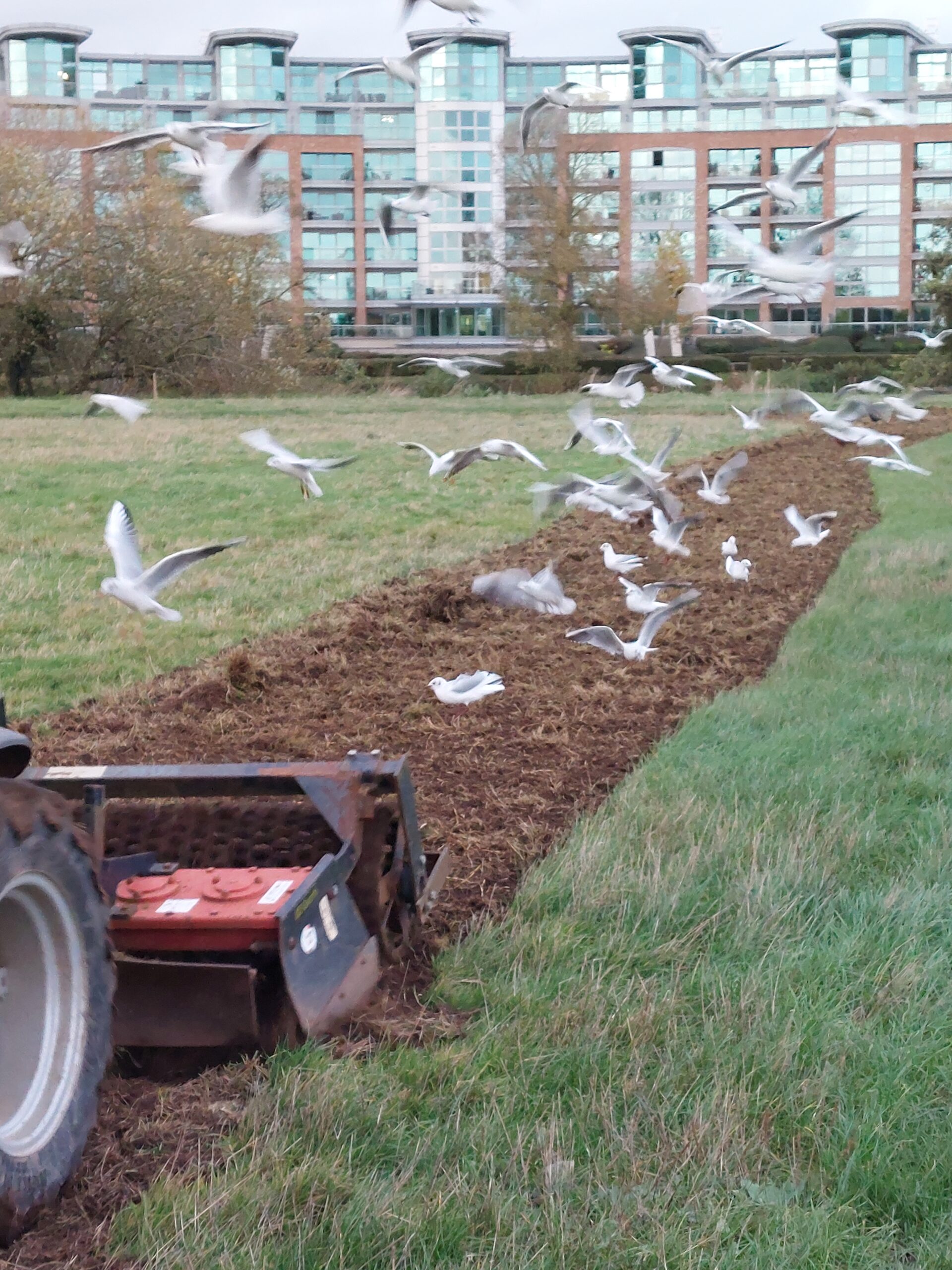 Sections of the orchard have also been harrowed and sown with seed. The aim is to create a Wildflower Walk through this central area of the reserve, adding plant diversity to feed insects and, in turn, birds.