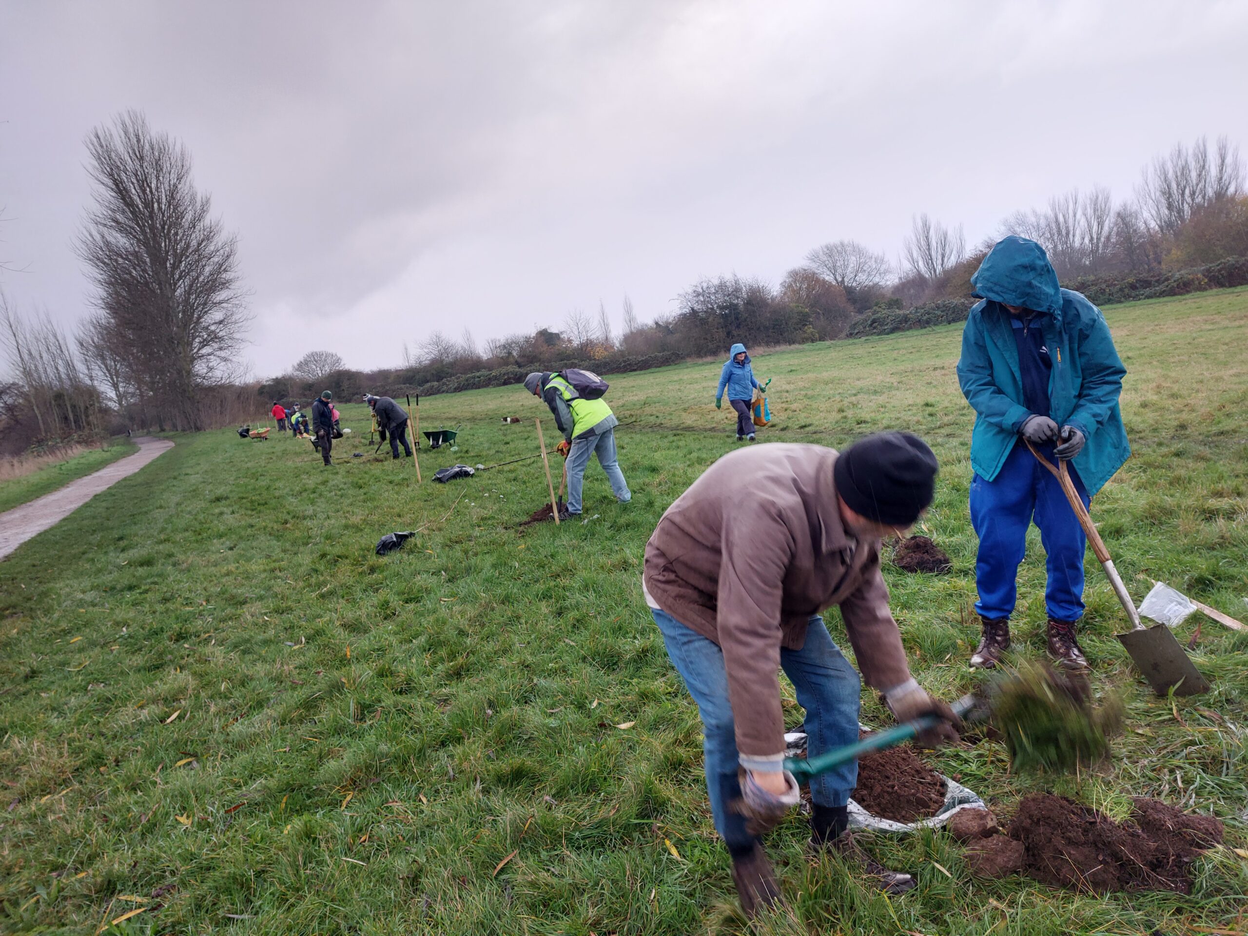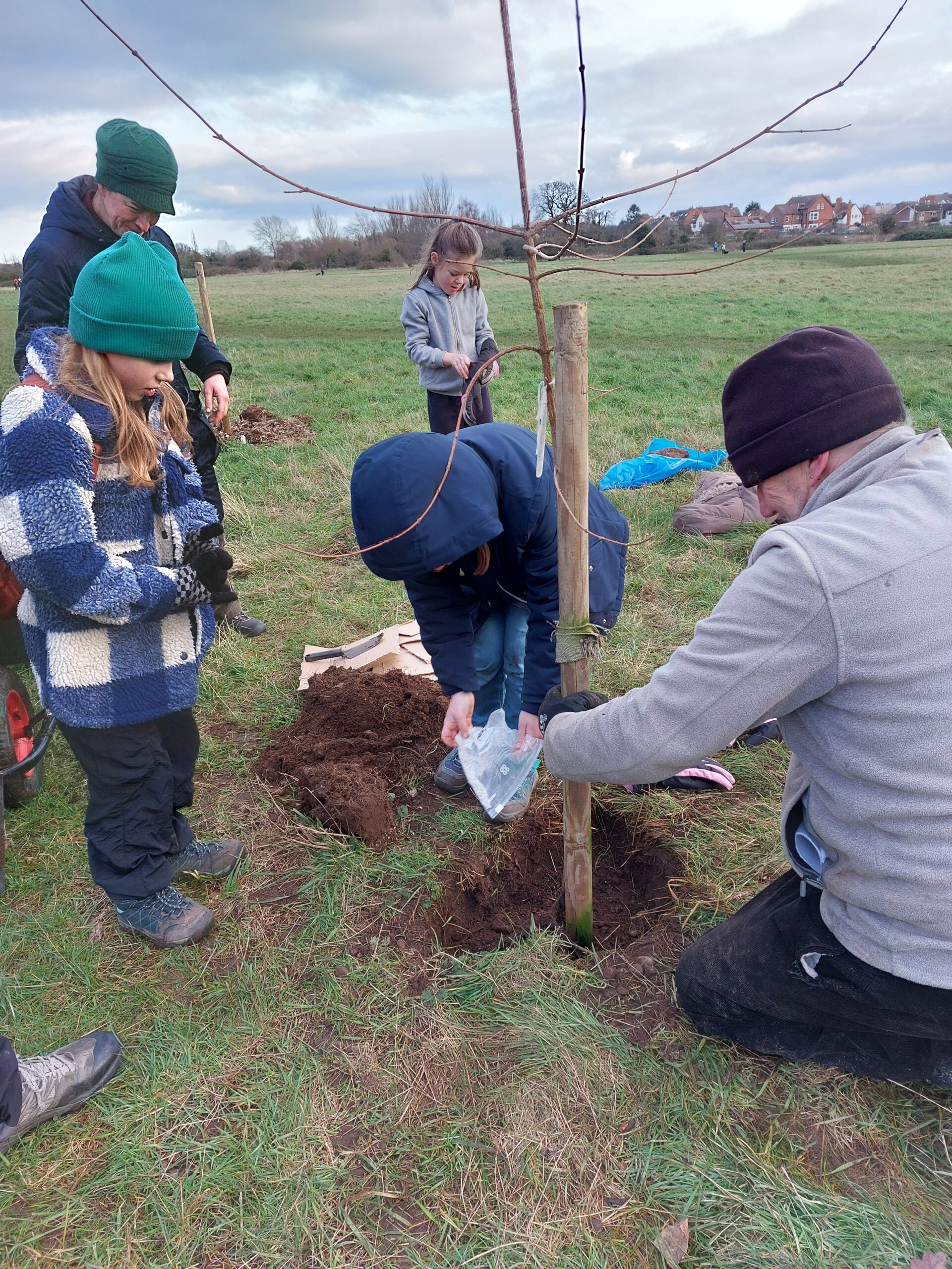 It’s been a busy winter planting trees on The Hook Nature Reserve. Thanks to the many volunteers – of all ages – who have turned out to help. We now have an avenue of 55 native trees along the riverside path, a mix of oak, alder, rowan, lime, cherry and silver birch. This will create a green corridor along the River Trent.