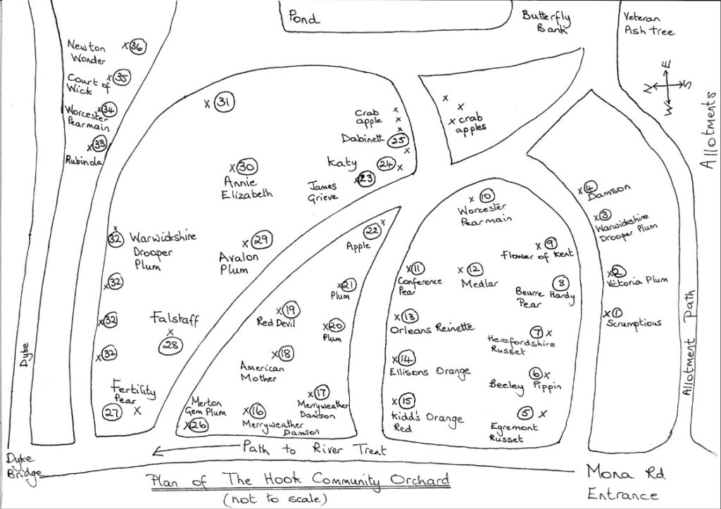 A list of varieties and corresponding map was produced in September 2025 for ‘Apple Day’ to help visitors explore the orchard. Click here to download it.