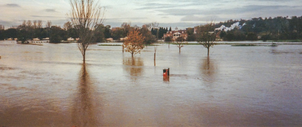 The Hook area was within the spill zone of the 1950s flood prevention works and did become inundated on rare occasions, most notably in 1974. This photo was taken at the brick flood wall at the end of Holme Grove, looking out over the the allotments which existed at that time along Holme Grove path. The Trent Depot warehouses on the right showing the actual river course.